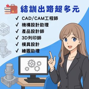 CAD/CAM工程師、3D列印工程師、產品設計師、機構設計助理、研發助理等多元方向!