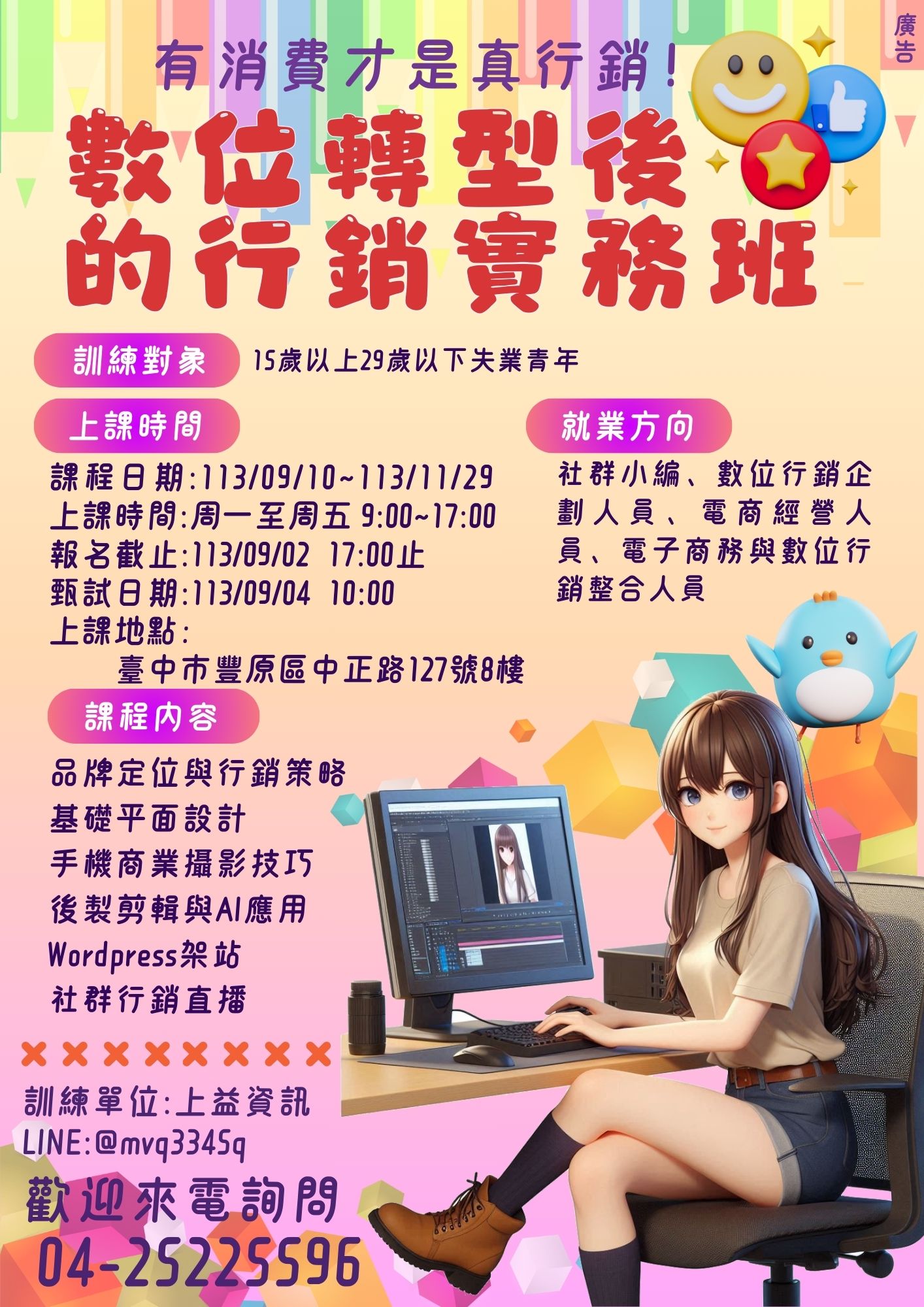 有消費才是真行銷!數位轉型後的行銷實務班/ 380小時 / 招訓人數25名